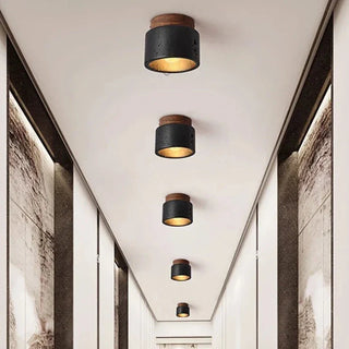 Emilio - Retro Black Stone Flush Mount Wood Ceiling Downlight