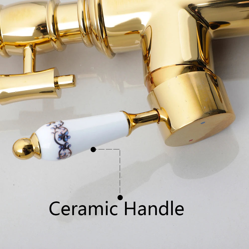 Introducing Ryann - the modern kitchen tap with a gold finish and coil spring design. Easily install on your deck and enjoy 360-degree rotation for precise water flow. With a pull-down spray feature and stainless steel polished surface, this tap also includes a brass valve core for long-lasting use. Upgrade your kitchen with this stylish and functional tap.